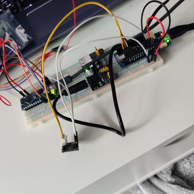 Arduinos were communicating through radio modules with Raspberry Pi devices which were communicating through Socket.IO with frontend app.